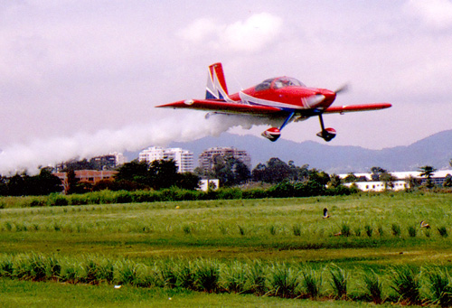 Completed aircraft on a low pass over the CEU Club in Jacarepaguá – Rio de Janeiro City / RJ. / Brazil.