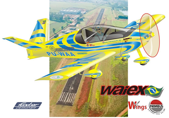 First Aerobatic WAIEX builted in South América at SONEXBRASIL in Tatuí Airport / SP. BRAZIL Flying photo and at your base in Tatuí City / SP. BRAZIL and at in your own EXPO AERO BRASIL- 2010, fair stand. at São José dos Campos / SP - BRAZIL On top, the SONEX AIRCRAFT LLC. from OSHKOSH / USA, Logotypes traduced for the Brazilian dealer.